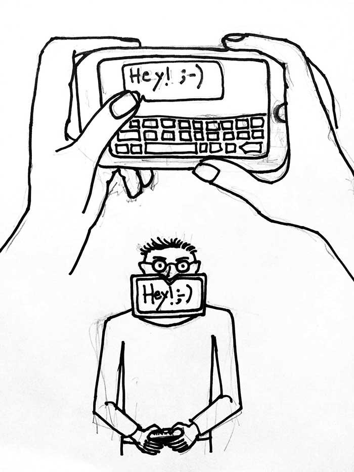 What happens to the sound and look of emotions as we strip our dialogues of all the sensory data and constantly communicate through short text messages rife with banal visual signifiers that have predefined, well-established meaning — what is the image conjured up by LOL?